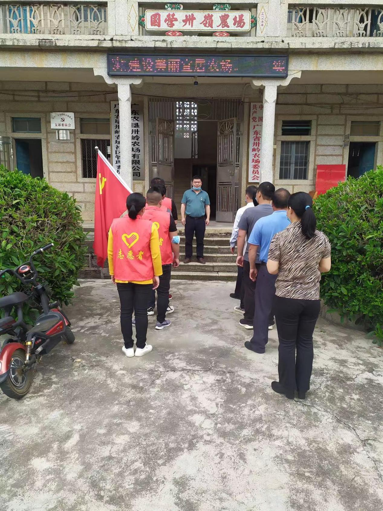 卅嶺農(nóng)場組織黨員疫情防控志愿隊到新興小區(qū)、新旺小區(qū)開展“擎旗筑堡壘、亮徽當先鋒”活動,發(fā)放《致卅嶺農(nóng)場全場居民一封信》150張,檢查登記來往人員的粵康碼,入戶走訪群眾疫苗接種情況83戶,充分發(fā)揮戰(zhàn)斗堡壘和先鋒模范作用。