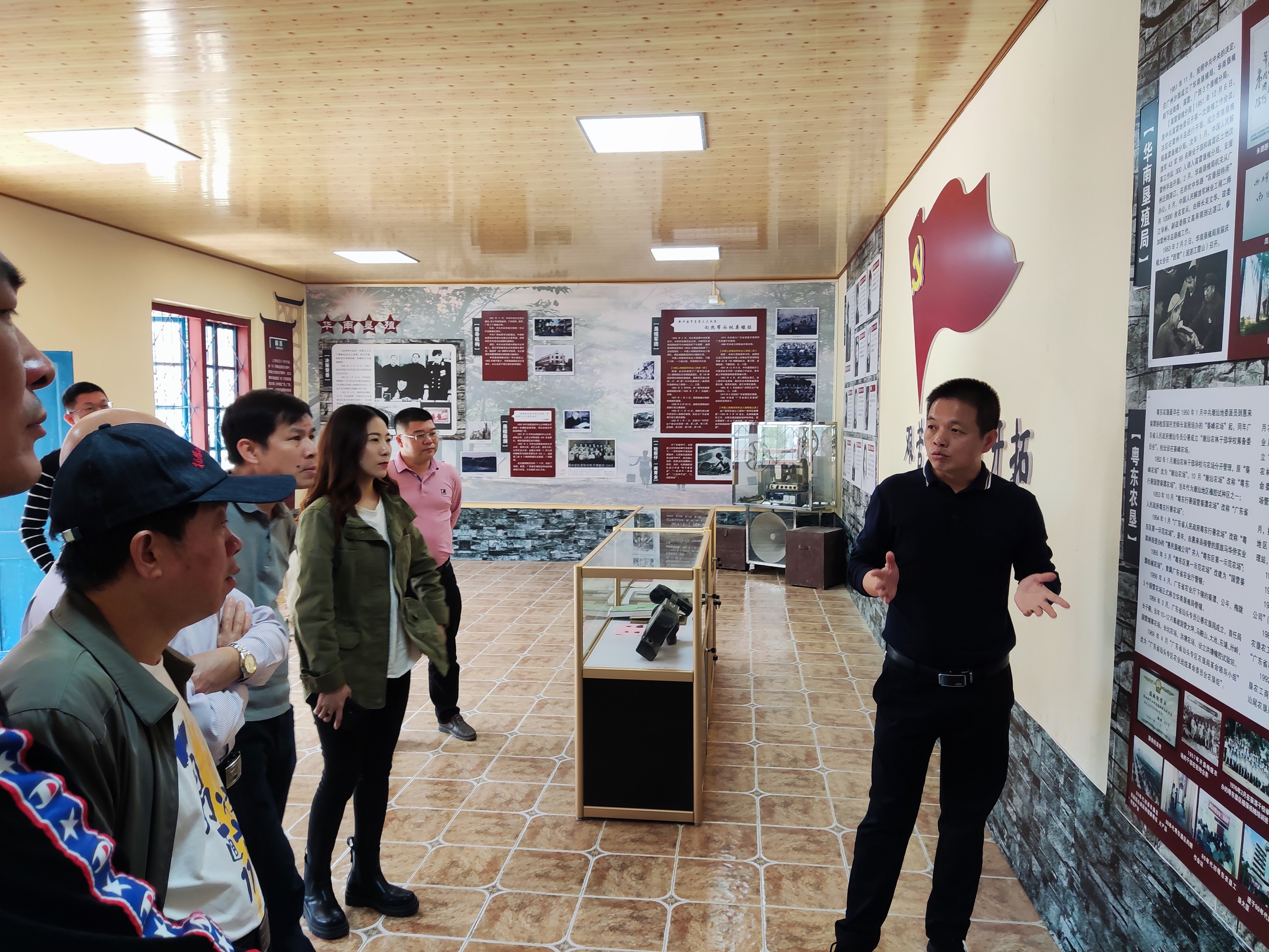 作協(xié)會(huì)員們參觀了粵東歷史陳列館,林小松同志詳細(xì)介紹農(nóng)墾的歷史和產(chǎn)業(yè)發(fā)展情況,重點(diǎn)講解了農(nóng)墾“為國(guó)種膠”的初心和“艱苦奮斗、勇于開拓”的農(nóng)墾精神,探討如何把科普教育基地和文學(xué)創(chuàng)作基地結(jié)合起來,拓展愛國(guó)教學(xué)活動(dòng)的方式。