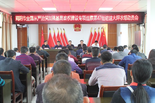 為深入貫徹落實(shí)揭陽市委六屆六次全會(huì)精神,揭陽市全面從嚴(yán)治黨加強(qiáng)基層政權(quán)建設(shè)專項(xiàng)巡察組將進(jìn)駐普寧各鄉(xiāng)鎮(zhèn)場(chǎng)街道,對(duì)普寧市28個(gè)鄉(xiāng)鎮(zhèn)場(chǎng)街道568個(gè)村(社區(qū))黨組織(延伸到村民小組)開展為期三個(gè)月的全面從嚴(yán)治黨加強(qiáng)基層政權(quán)建設(shè)專項(xiàng)巡察。2019年3月19日,揭陽市全面從嚴(yán)治黨加強(qiáng)基層政權(quán)建設(shè)專項(xiàng)巡察第47組組長(zhǎng)吳振旭帶領(lǐng)其他成員共3人進(jìn)駐大坪農(nóng)場(chǎng)。3月20日上午,大坪農(nóng)場(chǎng)召開市全面從嚴(yán)治黨加強(qiáng)基層政權(quán)建設(shè)專項(xiàng)巡察工作動(dòng)員會(huì)議,會(huì)議由場(chǎng)黨委書記官錦周同志主持,參加會(huì)議的人員有揭陽市委專項(xiàng)巡察組全體同志,普寧市掛鉤大坪農(nóng)場(chǎng)領(lǐng)導(dǎo),場(chǎng)機(jī)關(guān)全體干部職工、村(社區(qū))“兩委”成員、鄉(xiāng)賢咨詢委員會(huì)代表及村民代表等40多人。