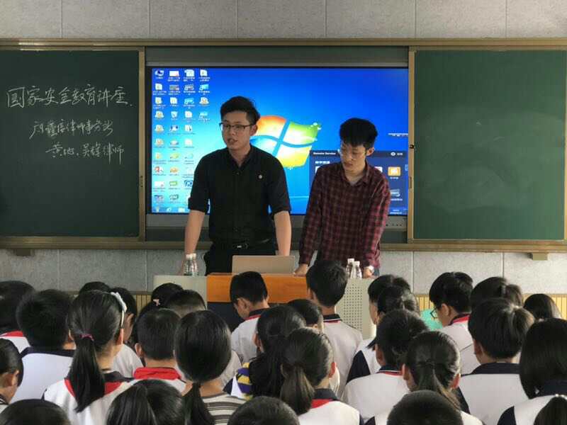黃地為同學(xué)們講關(guān)于國家安全法的立法沿革,什么是國家安全,如何開展國家安全工作,維護(hù)國家安全的任務(wù),公民、組織的義務(wù),中間黃地律師還對學(xué)生們提出問題,學(xué)生們都熱情應(yīng)答。